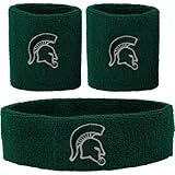 Michigan State University Spartan Head Logo Headband Wristband Combination Set with NCAA College Sports Team Logos