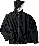 Style #: JP56 A jacket as spirited as your team. With sporty styling the nylon shell repels water while the sweatshirt fleece lining in the hood and body provides comfort and warmth. 100% Teklon nylon shell 1.5-ounce polyfill in sleeves Sweatshirt fabric body and hood lining 100% polyester sleeve lining Drawcord hood Locker loop Slash pockets Elastic cuffs with adjustable hook and loop closures Interior pocket with hook and loop closure Open hem with drawcord and toggle Port Pockets for easy embroidery access